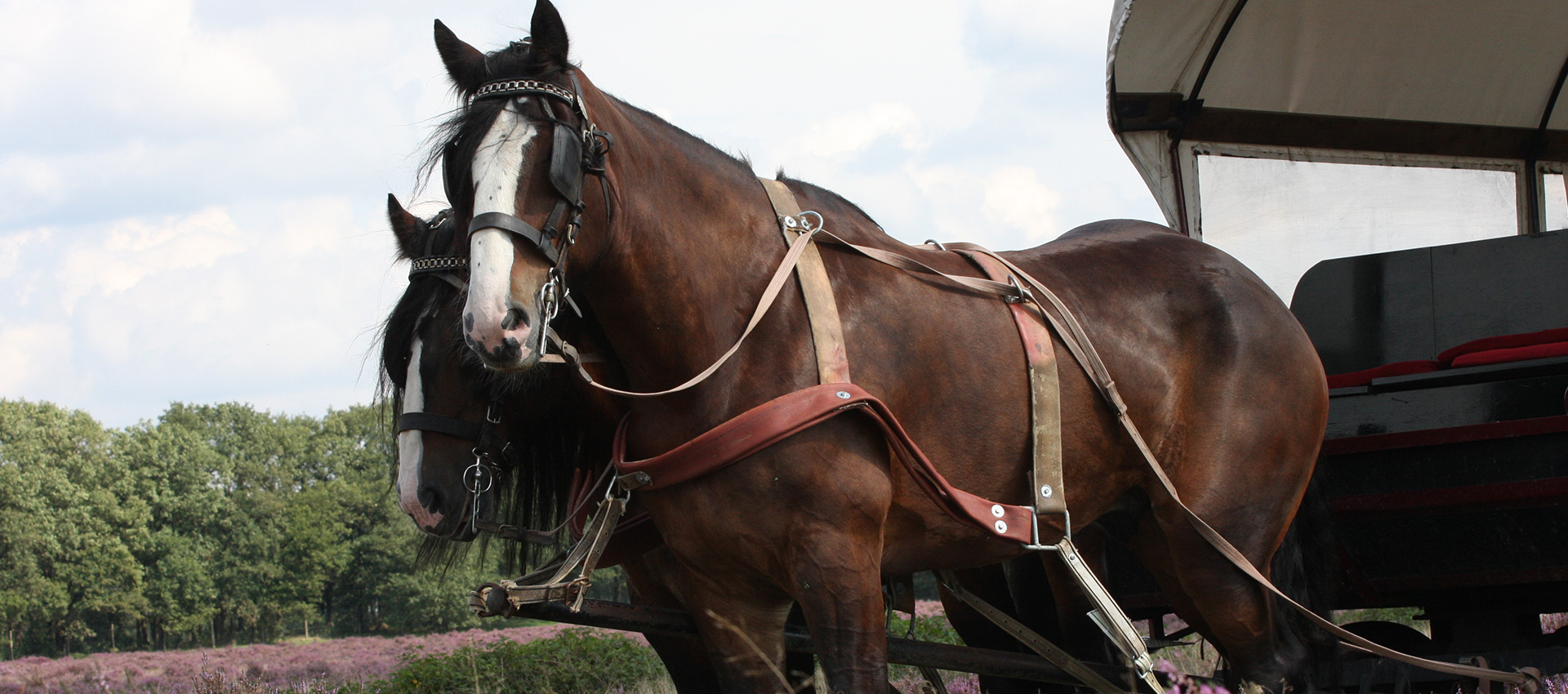 En maar wiebelen en maar kijken naar de kont van een paard... Zo zong Wim Sonneveld over een tochtje in een rijtuigie. Maar hoeveel heerlijker is een rit met de huifkar door de mooie Veluwse natuur! Vanaf Stalhouderij Wouter Hazeleger rijden de huifkarren met de sterke Shire Horses ervoor naar de mooiste plekjes in de omgeving. Onderweg hoef je niet alleen naar de paarden te kijken, want er is buiten de huifkar meer dan genoeg te zien. Geniet van de natuur en spot een wild paard of de kudde Spaanse koeien. Deze zwarte beesten met hun indrukwekkende hoorns lopen in het natuurgebied Planken Wambuis, waar de huifkarren van Wouter Hazeleger regelmatig komen. Hoe lang de tocht duurt, dat bepaal je zelf. Er zijn verschillende routes mogelijk . Het is mogelijk onderweg te stoppen voor bv een picknick of een hapje en drankje , het is zelfs mogelijk onderweg een sage verteller af te spreken die spannende verhalen van deze omgeving verteld. Ieder gezelschap kan bij Stalhouderij Wouter Hazeleger een leuke dag samenstellen, kort of lang, met veel of weinig mensen. Met familie, vrienden of collega’s!