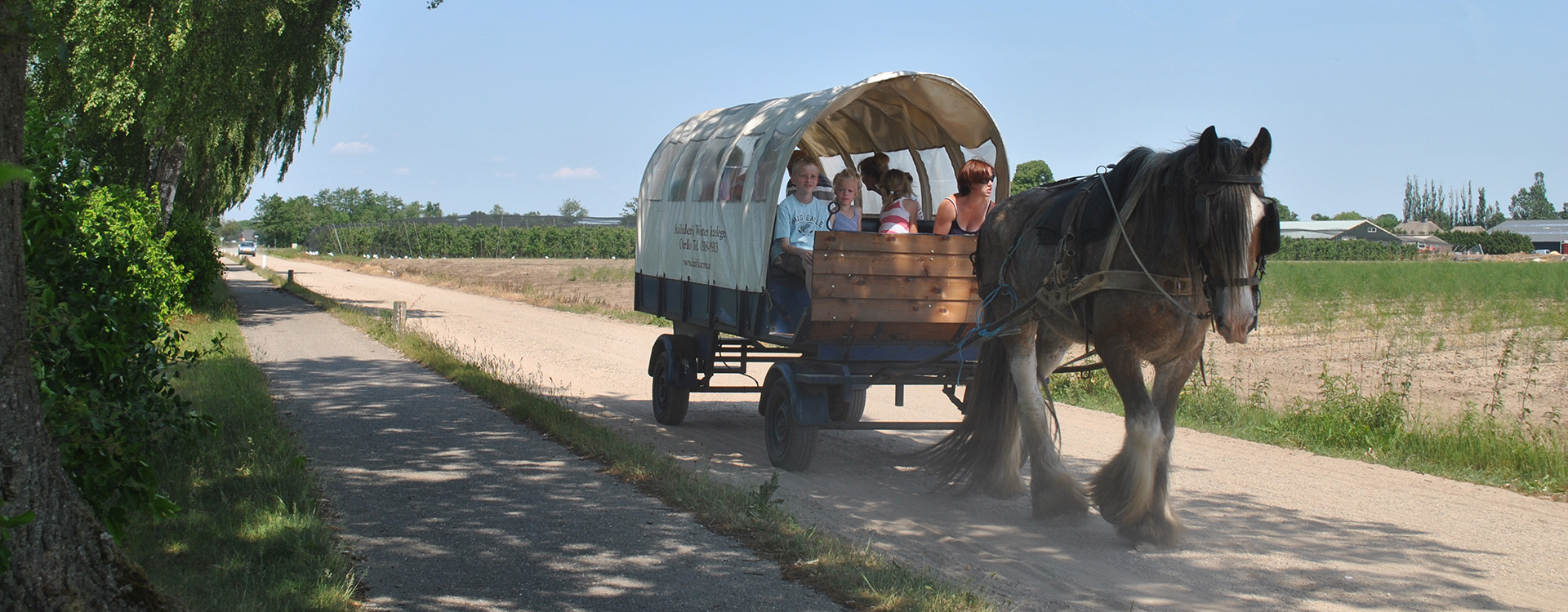 Geen uren in een drukke speelhal, maar een heerlijke dag in de natuur! Vier een kinderfeestje met een huifkartocht over spannende bosweggetjes en door het bos. Het feest begint al bij de stallen van Stalhouderij Wouter Hazeleger, waar de indrukwekkende paarden hun thuis hebben. De kinderen mogen hier rustig even rondkijken en de paarden aaien. Na wat te drinken klimt iedereen in de huifkar en kan de reis beginnen! Onderweg mogen alle kinderen om de beurt op de bok zitten; iets wat ze vaak geweldig vinden! Halverwege de huifkartocht staan de paarden een poosje stil in het bos, waar de kinderen een spel kunnen spelen of lekker rondhollen. Bij terugkomst wachten er frietjes en een snack, met iets te drinken erbij. En daarbij hoort natuurlijk een ijsje!